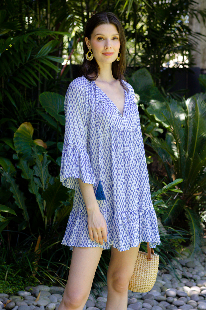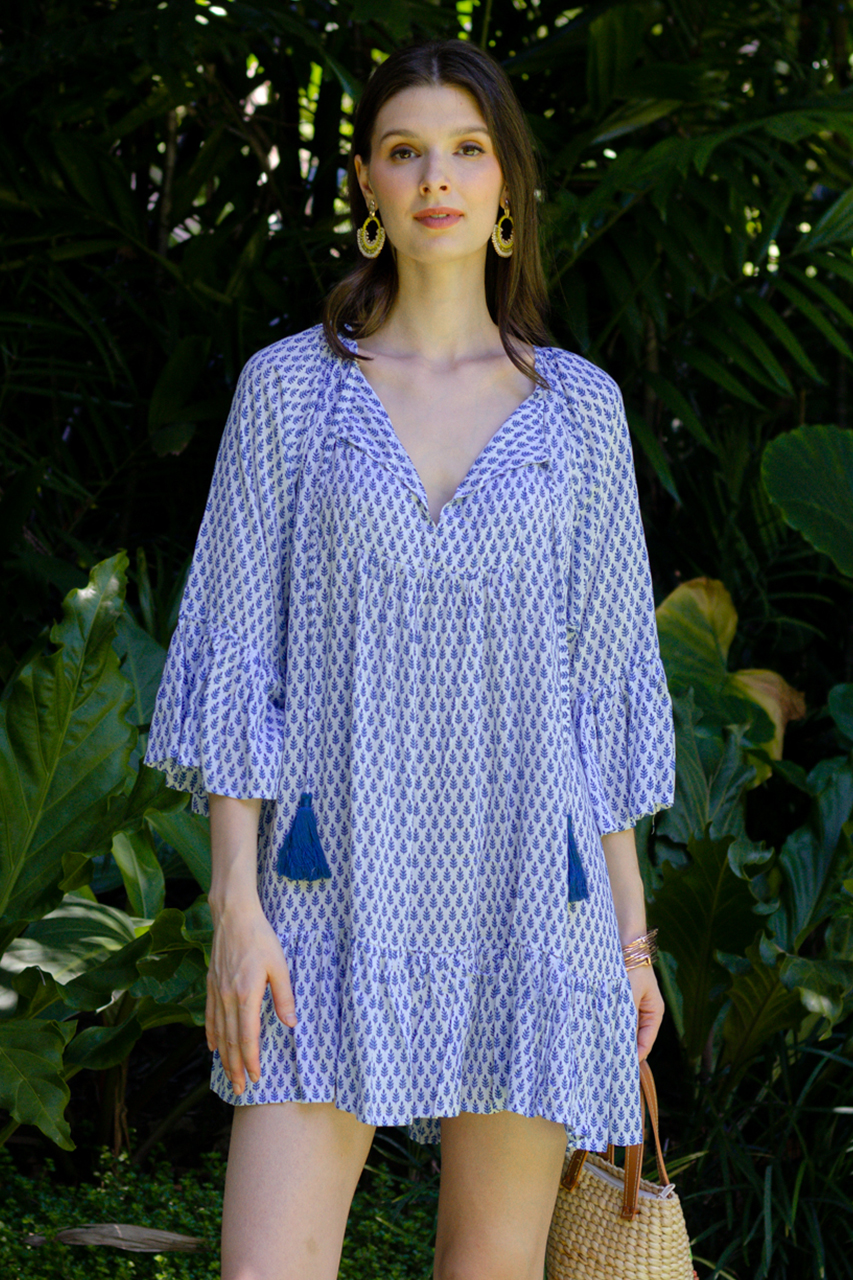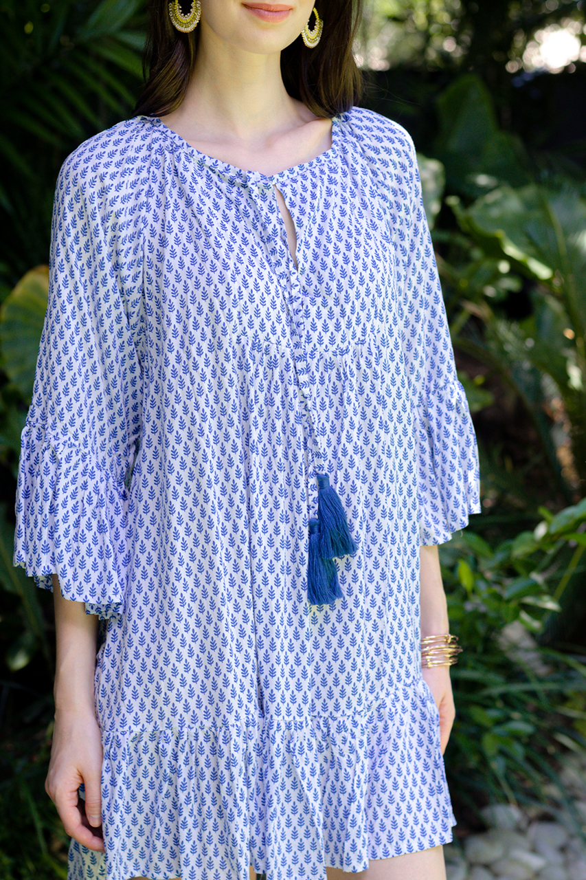 We absolutely love the Irina coveup! The perfect ray of colors that remind you of the salty air and sun-kissed glow of the season. This cotton coverup can be worn as a dress or with your swimwear. The pretty tassels and flouncy sleeves and fun to this closet must-have.