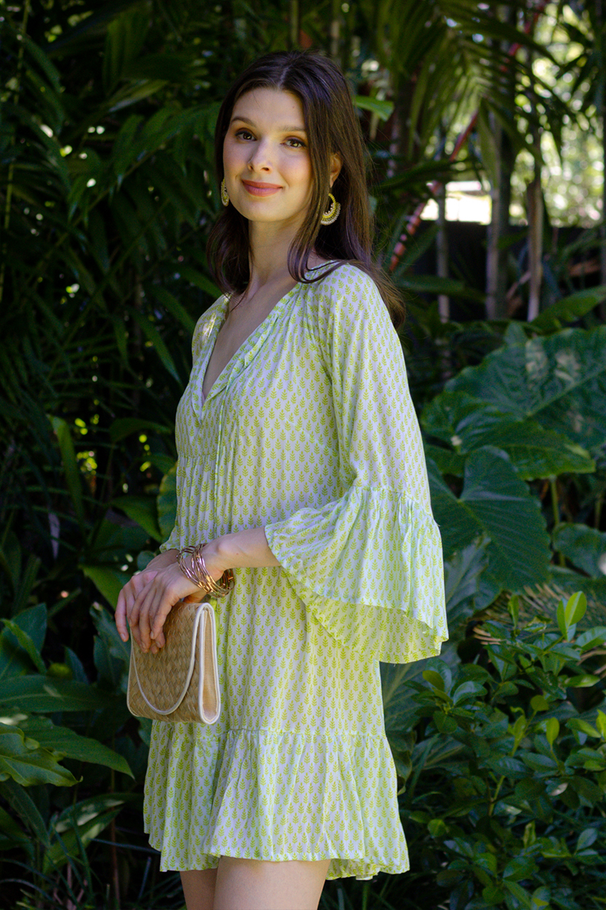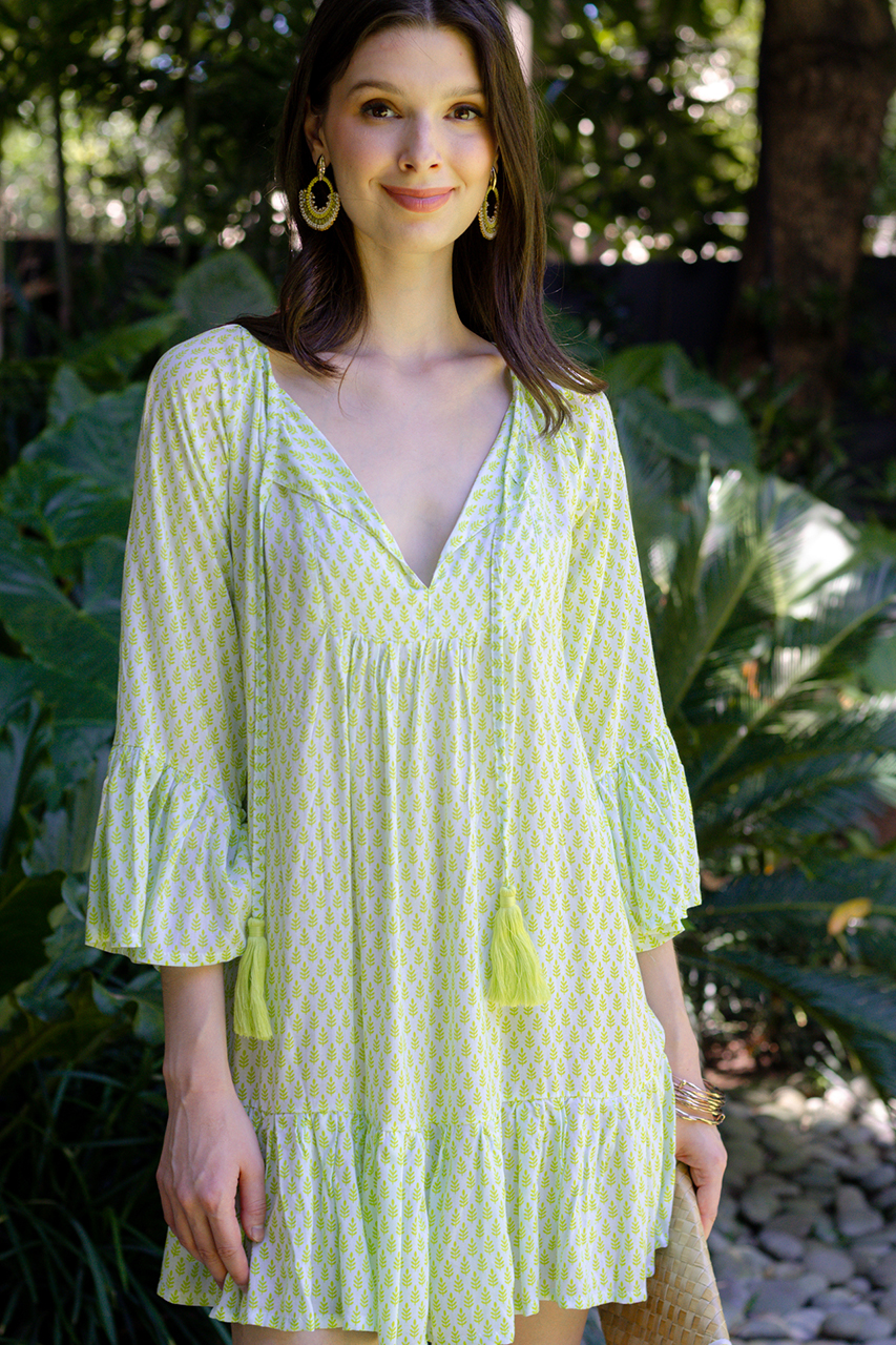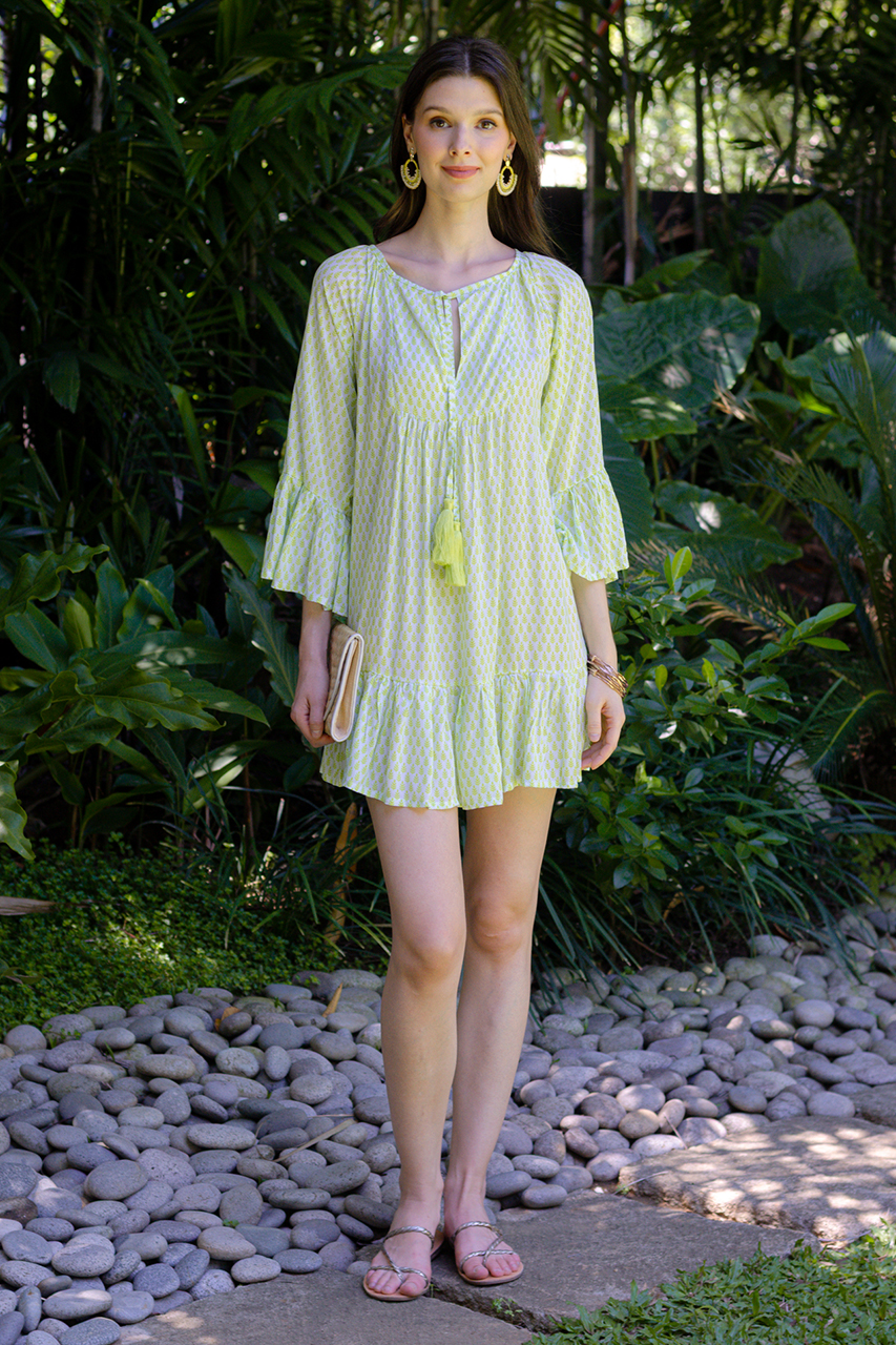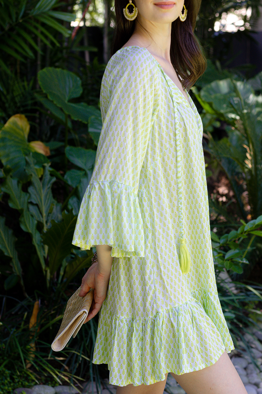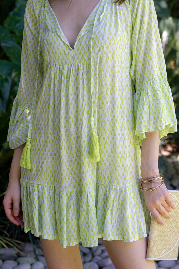 We absolutely love the Irina coveup! The perfect ray of colors that remind you of the salty air and sun-kissed glow of the season. This cotton coverup can be worn as a dress or with your swimwear. The pretty tassels and flouncy sleeves and fun to this closet must-have.