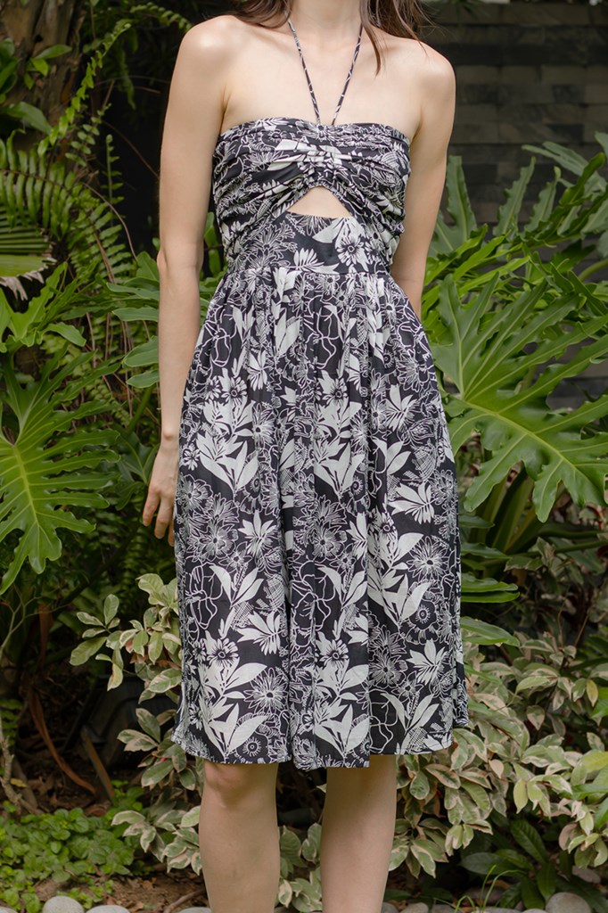 The Tati halter dress is a head-turning style, crafted from 100% breathable cotton, this fully lined dress features a flattering halter neck, a flirty peek-a-boo design, and a convenient side zipper plus 2-sided pockets for a perfect relaxed fit. The dainty floral design add a touch of resort elegance, while the empire cut provides a playful finish to this must-have dress. A perfect style for those fun sundowners.